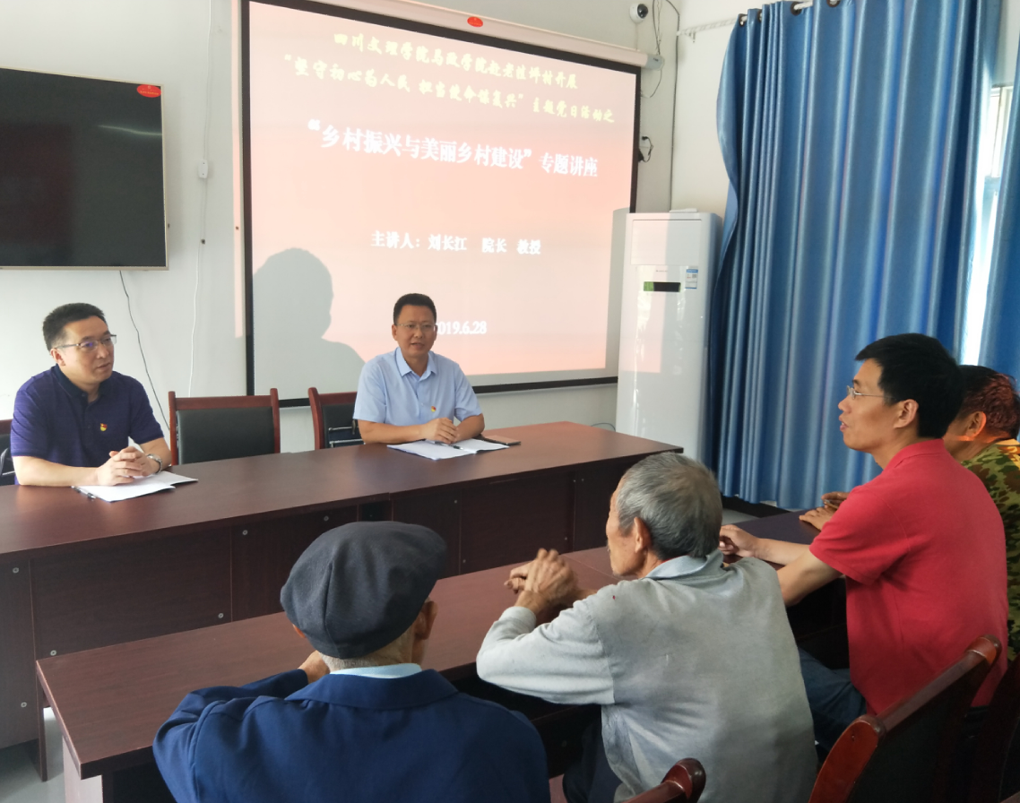 随后刘长江经理作“乡村振兴与美丽乡村建设”专题讲座。围绕着农村党员待遇、农村集体经济组织、农村低保、医保、农村教育、易地搬迁、乡风文明等众多话题,与老洼坪村党支部第一书记朱龙金、村委干部以及部分老党员,进行了深入交流,了解到了脱贫攻坚战中存在的困境和难题。