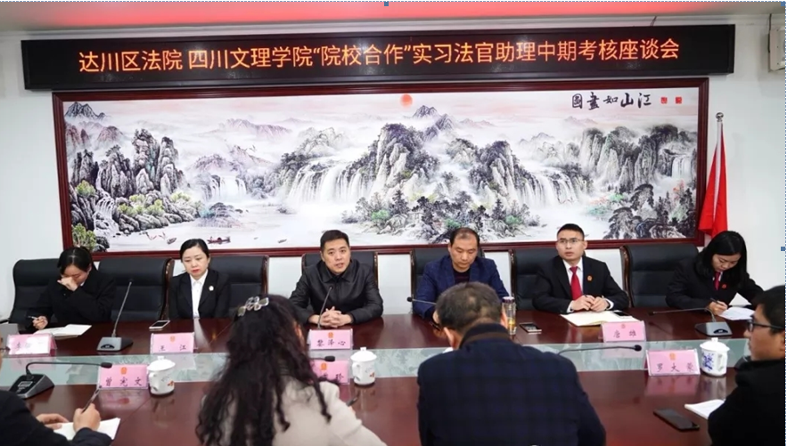 2018年11月8日上午,由王秀珍经理带队,刘春辉副经理、曾宪文副处长一行5人前往达川区人民法院开展毕业生中期实习检查工作,现场召开了 “院校合作实习法官助理中期考核座谈会”, 会议由李官恒副经理主持。
