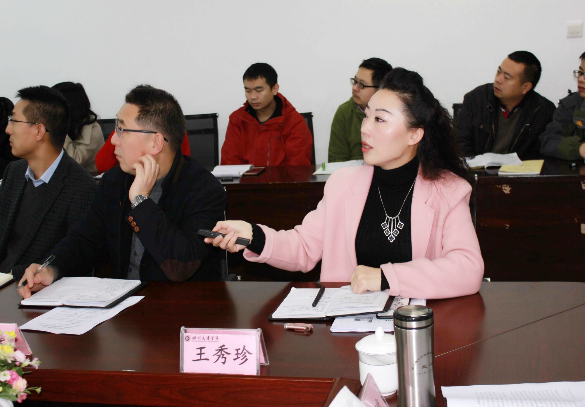 王书记围绕评估日常工作要求对本次教学检查进行了总的安排与部署。随后,王秀珍经理做了主题为“凝神聚力内涵发展”的专题汇报。王秀珍经理从学院审核评估评建简况、团队队伍与教风学风建设、专业与课程内涵建设、质量管理与提升、存在问题与改进五个方面对学院的教学工作进行了详细汇报。会议阶段结束后王成端书记对我们的中期教学检查工作进行了分组,由王成端书记、侯忠明书记带队听课,党(校)办公室主任涂德祥、人事处处长张皓等对资料室进行参观检查,并对学院班子、教研室主任、部分专任教师进行访谈,教务处副处长曾宪文、督导专家杨清平针对毕业论文、期末试卷及学院存档资料进行检查。
