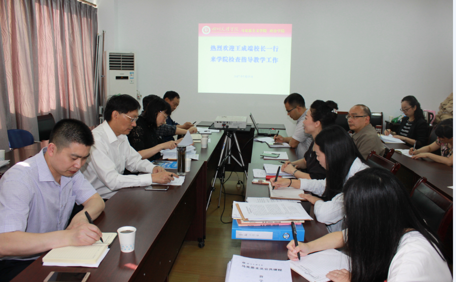 经理王秀珍从学院审核评估工作、学院团队融合与教研室建设、开展特色教研活动、加强教学科研团队建设、加强学风建设、服务地方等工作作了详细汇报。副经理朱德莉围绕本科专业评估、教学大纲的修订、课程建设规划、毕业论文工作、员工实习、青年教师优质课竞赛、教学能力大赛、教学日常行为管理、在建教学质量工程项目建设等分别作了汇报。评估处督导专家陈正平从教学团队建设、团队队伍建设、提升思想政治理论课教学质量、青年教师站稳讲台、改善学院办公条件等提出了建设性意见。教务处长邓杰肯定了学院在专业建设、思想政治理论课“2+1”教学改革和在线考试方面取得成绩,希望两个学院要整合资源,实现深度融合。