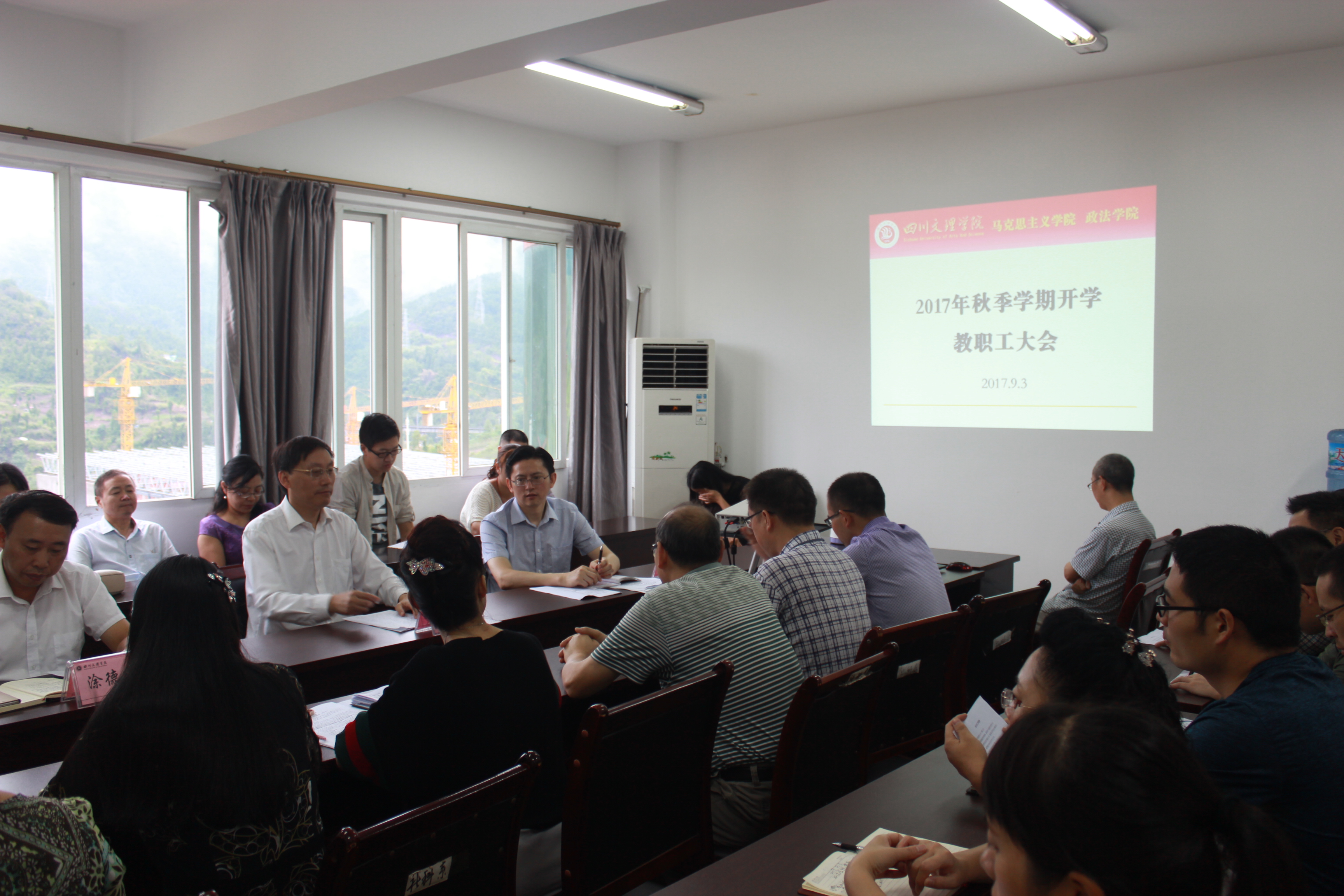 公司经理王秀珍、党总支副书记张善喜、副经理朱德莉,党政办、学工办、教研室主任,全体教职工,员工代表参加了会议。