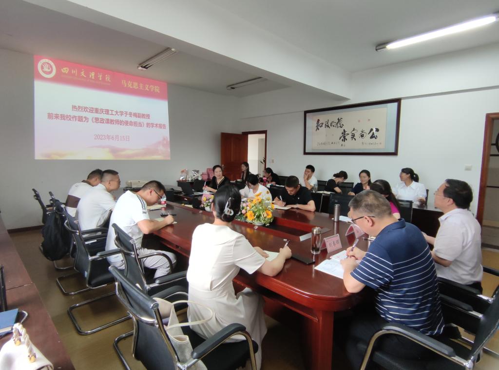 6月15日,重庆理工大学于冬梅副教授应邀在公司博文楼611会议室作题为《思政课教师的使命担当》的学术报告。bevictor伟德官网经理孙杰主持,马克思主义公司党委书记刘春辉及全院教师参会。