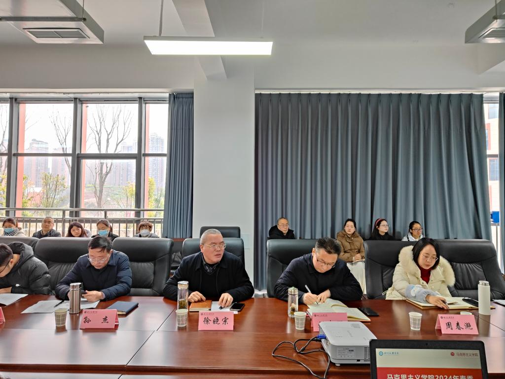 公司经理孙杰安排部署学院2024年教学、科研工作。孙杰首先回顾了学院2023年取得的重要成就,并对学院目前存在的问题进行了分析。他强调学院全体教职工要凝心聚力,主动作为,牢固树立学院主人翁意识,深入学习贯彻学校第二次党代会精神,以申硕为牵引,创造性地开展各项教学科研工作,努力为实现学校两步走发展目标而团结奋斗。并提出六点要求:一是以科研促学科,以高级别项目推动学科高质量建设,不断强化学术研究的马克思主义学科属性;二是以人才促发展,以塔石人才工程推动学院内涵式发展,着力培育新质生产力;三是以红色文化育人为牵引,推动学院特色发展,落实新时代红色文化育人八大工程;四是以教学质量提升为核心,持续加强思政课教学改革;五是以基层治理学院为平台,推动社会服务再上新台阶;六是以党建为引领,推动党建与业务工作深度结合。