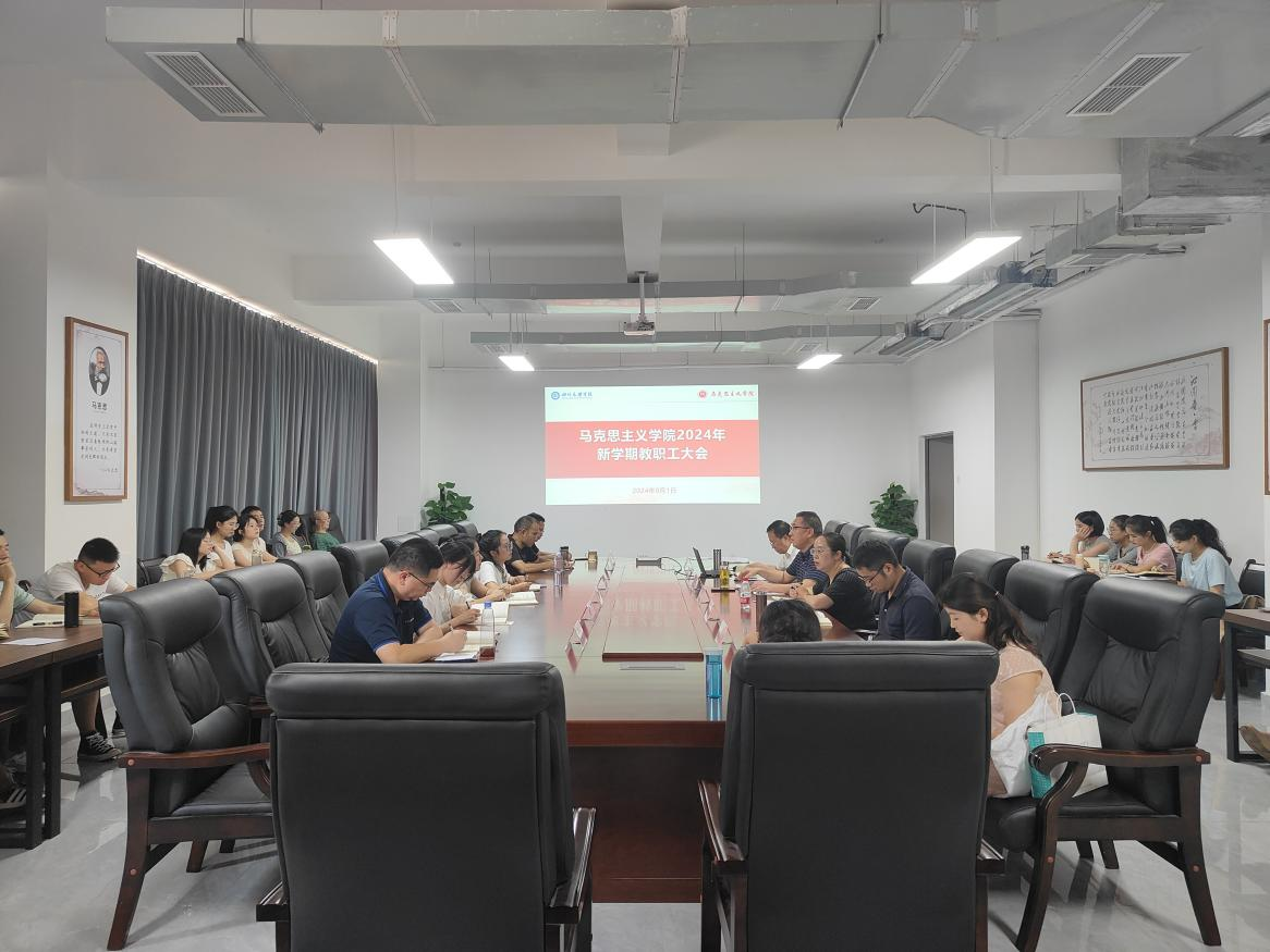 经理孙杰教授回顾了学院暑期的工作情况,并详细梳理了2024年秋季学期六项工作要点。一是以开展思政课课堂教学质量提升行动为契机,持续加强思政课教学改革;二是以科研促学科,以高级别项目推动学科高质量建设;三是以人才促发展,以塔石人才工程推动学院内涵式高质量发展;四是以红色文化育人为牵引,推动学院特色发展;五是以基层治理学院为平台,推动社会服务再上新台阶;六是以党建为引领,推动党建与业务工作深度结合。