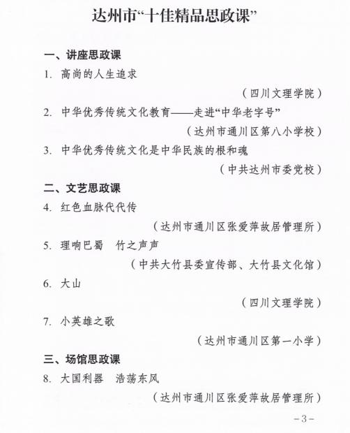 由中共达州市委宣传部等3部门主办的2024年达州市“十佳精品思政课”评选结果于近日揭晓,bevictor伟德官网报送的《高尚的人生追求》、《大山》2件作品入选,体现了学院大思政课建设成效。