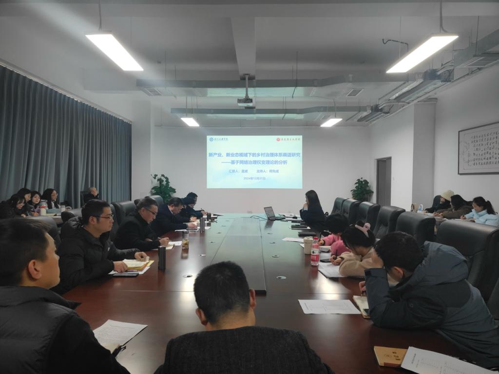 为提升学院整体学术研究水平,12月25日,孟威博士为全体教师作《新产业、新业态视域下的乡村治理体系调适研究——基于网络治理权变理论的分析》的学术讲座,讲座由学院副经理何先成主持。