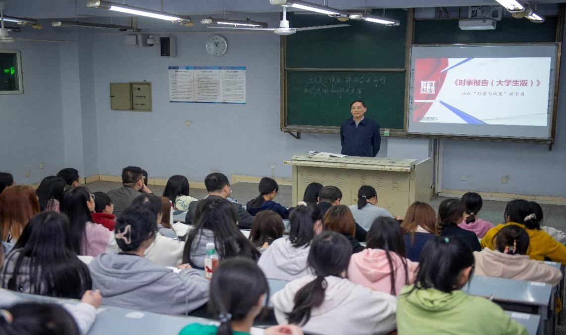 公司党委书记王成端教授为文学与传播学院师生作形势与政策报告