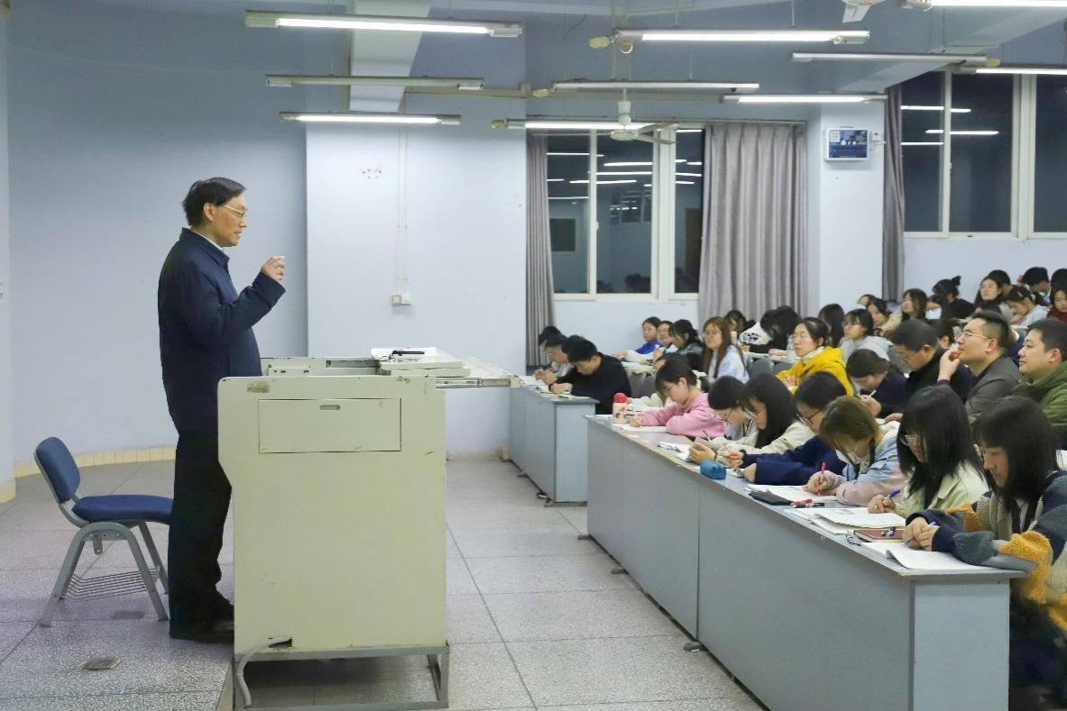 最后,王成端教授寄语在场的青年员工:在新征程上,要增强忧患意识,坚持底线思维,发扬斗争精神,增强志气、骨气、底气,不信邪、不怕鬼、不怕压,知难而进、迎难而上,全力战胜前进道路上各种困难和挑战,努力把自己锻造成具有“三心四能五复合”的高素质应用型人才,把个人发展的“小我”融入民族复兴的“大我”之中。