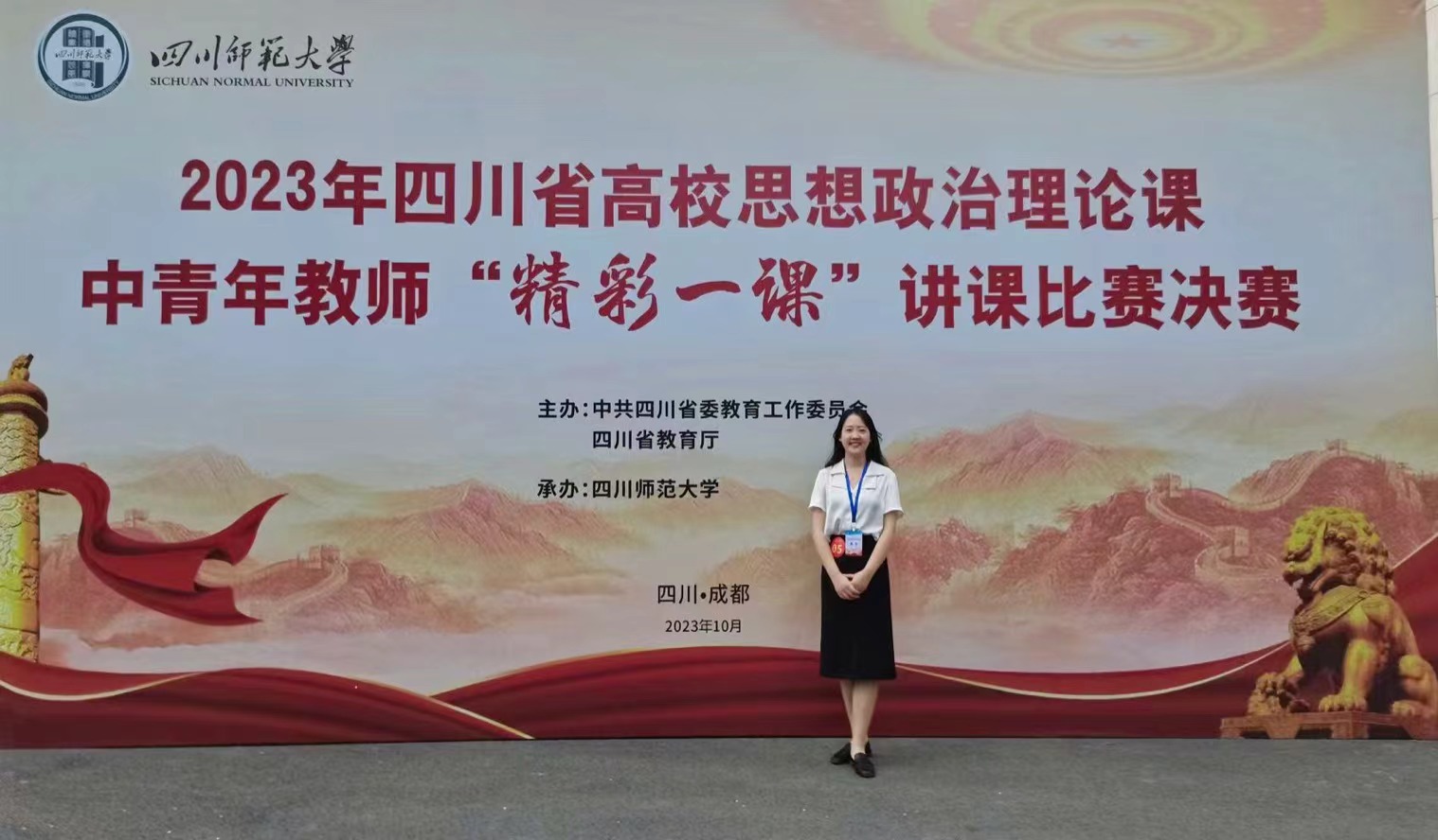 10月28-29日,2023年四川省高校思想政治理论课中青年教师“精彩一课”讲课比赛决赛在四川师范大学举行,此次大赛旨在充分展示全省各高校深化思政课改革创新的成果,推动新时代高校思想政治理论课高质量发展。公司高度重视,精心组织,青年教师丁玉洁参赛并荣获“特等奖”。