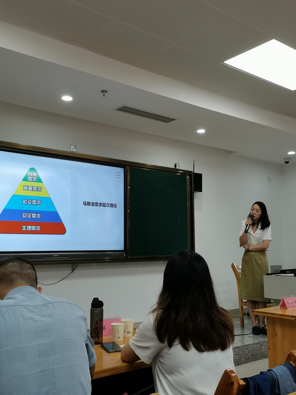 丁玉洁老师以“高尚的人生追求”为题,采取问题链教学法,从“什么是人的本质”、“什么是人生目的”、“为什么要思考人生目的”以及“追求什么样的人生目的”四个方面展开讲授,内容既有学理性,能够引发深层次思考,又贴近员工生活,富有趣味性。在场教师表示获益匪浅,对自身学段的教学设计很有启发。