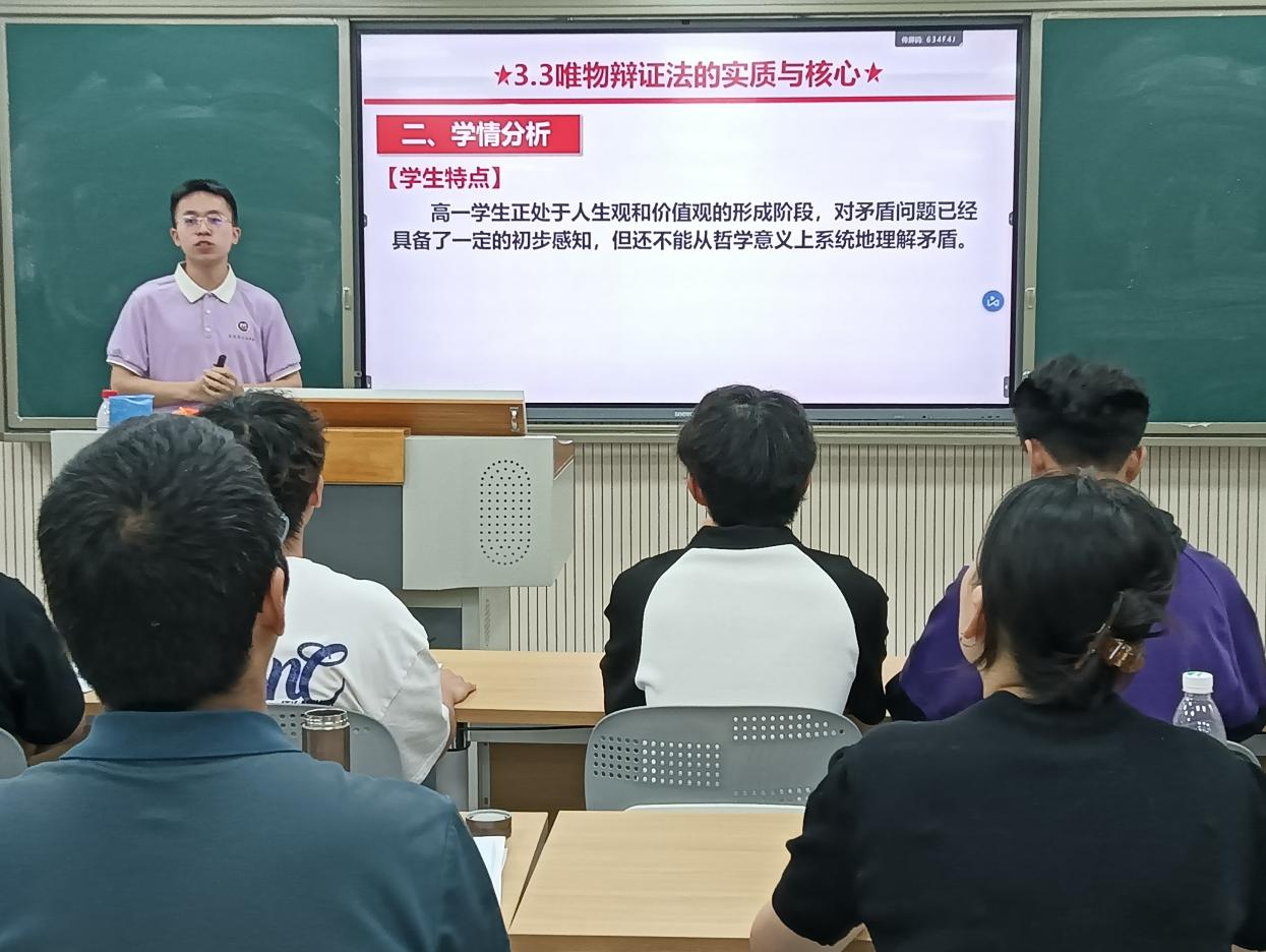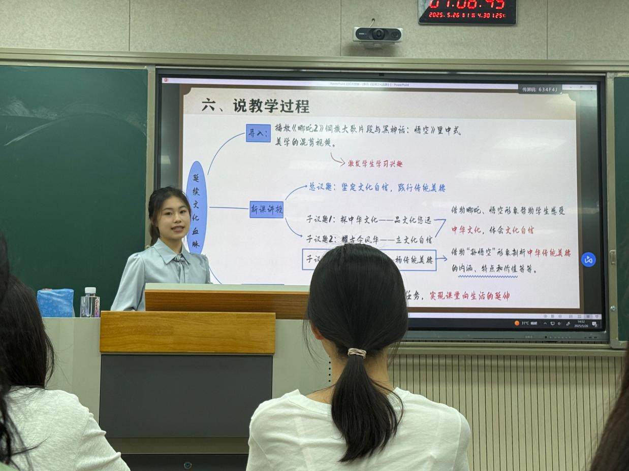 为进一步提升师范生的综合教育素质和教学技能,搭建“以赛促教,以赛促学,以赛促改”的教学交流平台,5月26日、27日,学院在东区B202智慧教室分别开展了2025年师范生教学能力大赛初中组和高中组的决赛。来自思想政治教育专业大一至大三年级的19名选手经初赛选拔进入到决赛的最终角逐中。