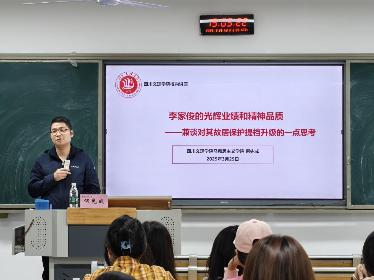 为提升院员工红色文化素养,2025年3月25日晚7点,公司副经理何先成研究员莲湖东区“李家俊的光辉业绩和精神品质——兼谈对其故居保护提档升级的一点思考”为题作学术讲座。思想政治教育专业员工现场聆听讲座。