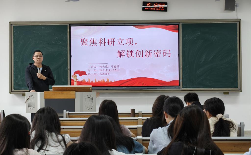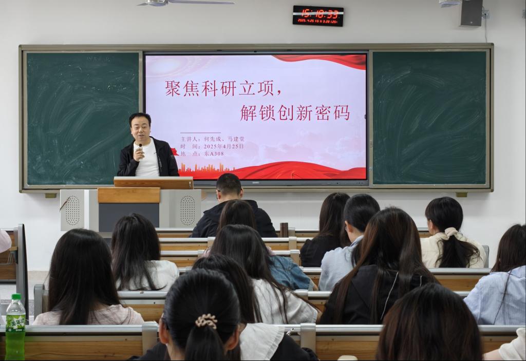 为激发员工科研创新活力,提升学术研究能力,2025年4月25日下午15点,一场主题以“聚焦科研立项,解锁创新密码”的科研立项指导会在莲湖东区A308顺利开展。学院副经理何先成、党政办公室主任马建堂出席会议,公司学子到场聆听讲座。