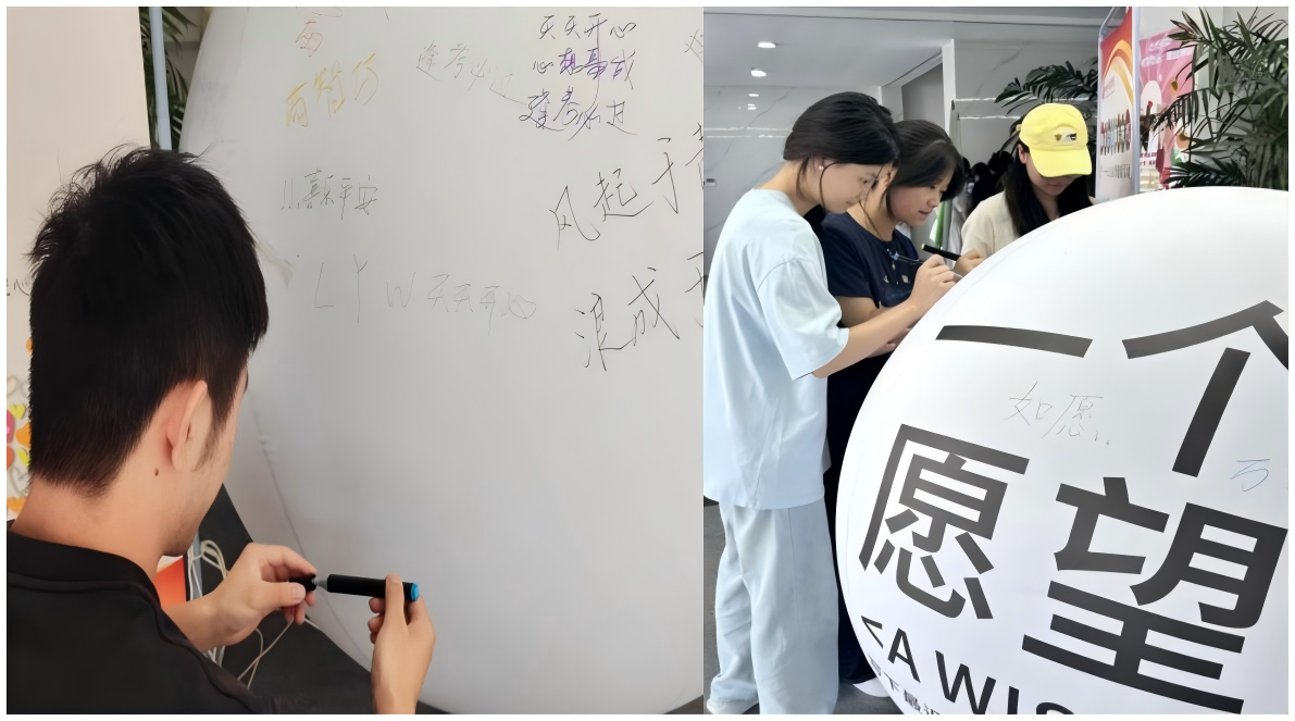 心愿,就像大海中的一盏明灯,尽管微弱,只要坚持,终将给人带来希望。活动主题为“一个心愿——遇见更好的自己”,活动以心愿气球为主要方式,让同学们书写和分享心愿表达内心期待,增强积极心理暗示。免费书写的形式让同学们增强表达欲和参与感,在愉快的氛围中让自己的心愿有了寄托。