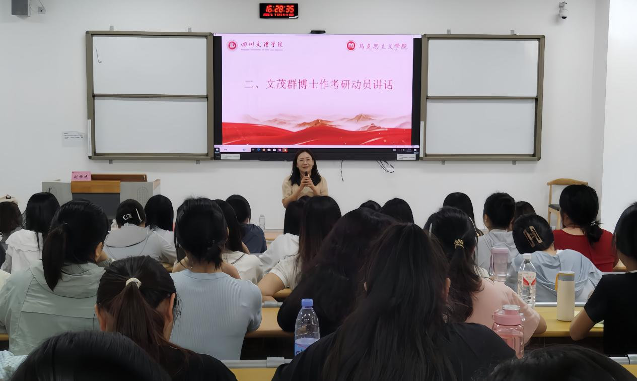 为帮助员工明确职业发展方向,做好学业与职业规划,提升考研热情,2025年5月7日下午,学院在A318教室开展职业生涯规划专题讲座暨2026届考研动员大会。公司党委书记刘春辉、党委副书记周春滟、副经理何先成、文茂群博士、达州市农业农村局乡村基层治理科科长刘恒远、辅导员唐雨涵、2022级员工出席会议,经理孙杰主持会议。